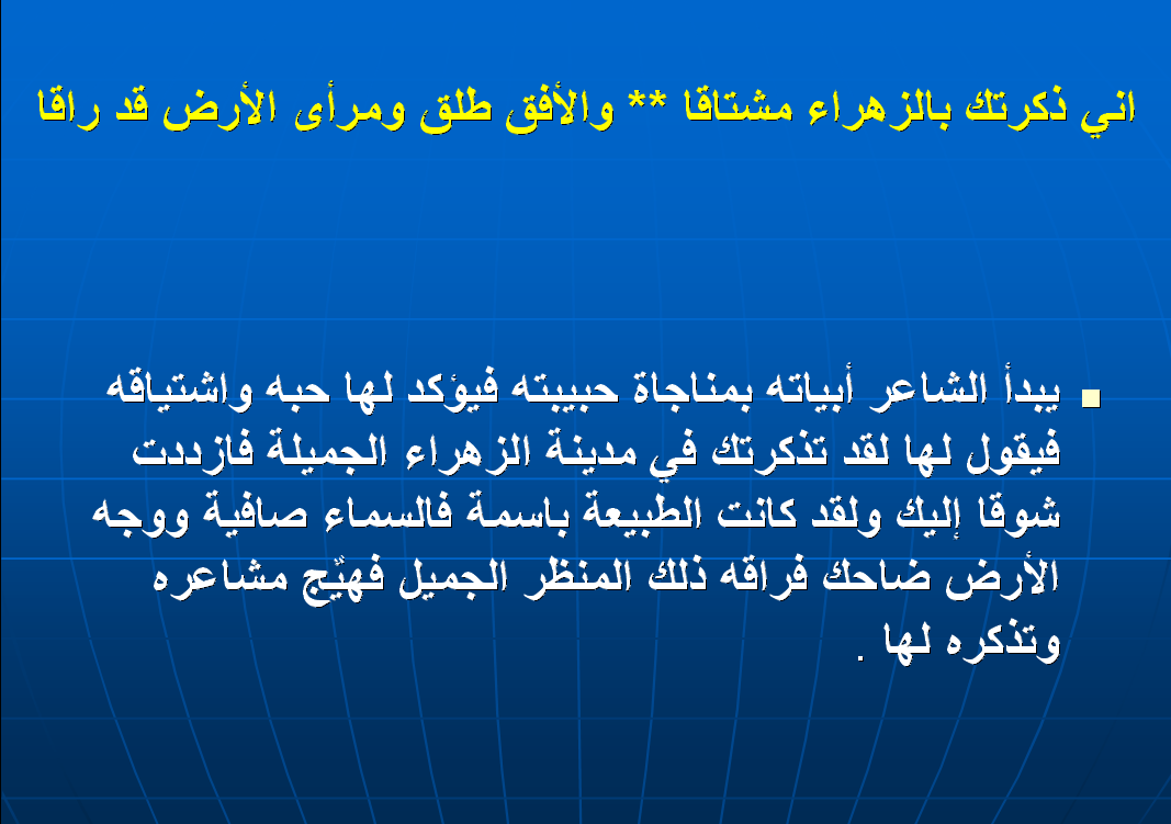 روائع الأدب العربي On Twitter إني ذكرتك بالزهراء مشتاقا والأفق طلق ووجه الأرض قد راقا وللنسيم اعتلال في أصائله كأنه رق لي فاعتل إشفاقا والروض عن مائه الفضي مبتسم كما شققت