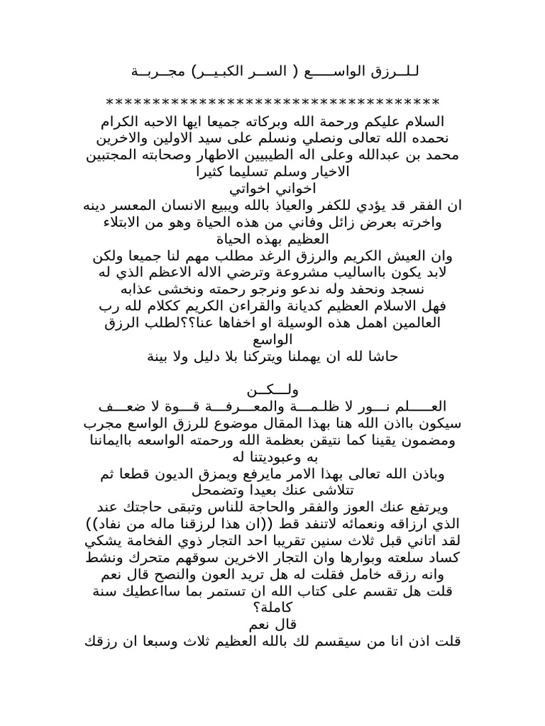 للرزق الواسع السر الكبير مجربة الهية يقينية