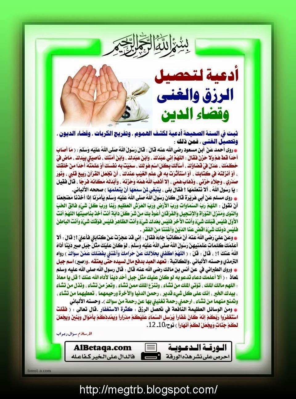 أدعية لتحصيل الرزق والغنى وقضاء الدين موقع البطاقة الدعوي