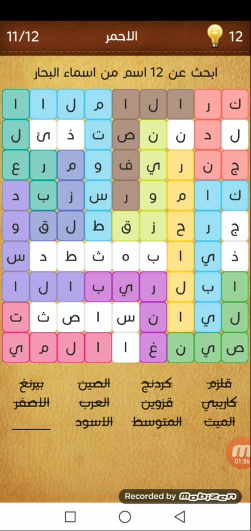 ابحث عن 12 اسم من اسماء البحار خطوات محلوله