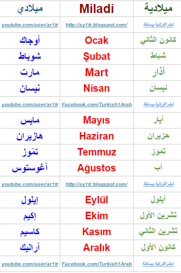 أشهر السنة باللغة التركية الدرس تركيا بين يديك Turkiye Rehberi Facebook