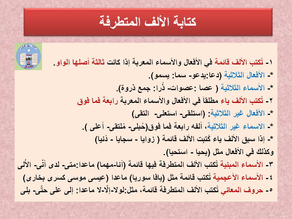 للالف المتطرفة اخر الكلمة صورتان حلول مناهجي