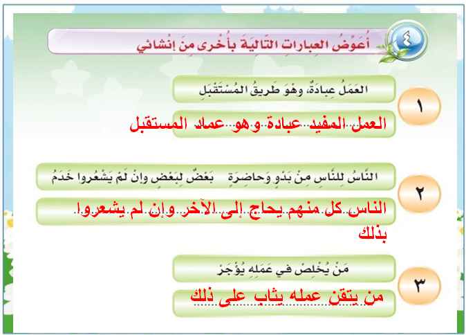 اعوض العبارات التالية باخرى من انشائي الرسائل