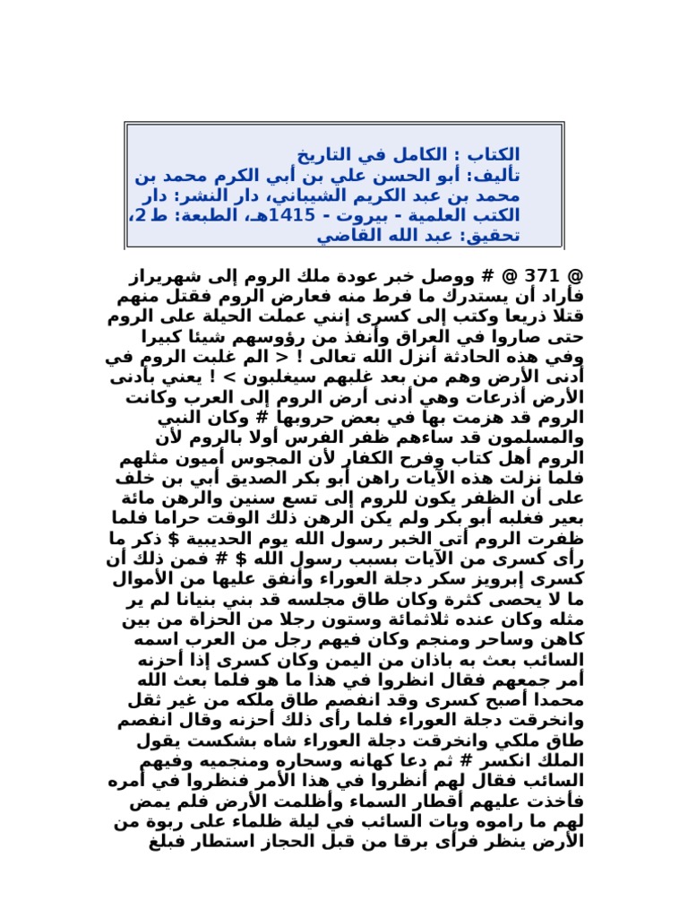 قراءة وتحميل كتاب الكامل في التاريخ ط العلمية علي بن محمد بن محمد ابن الأثير الجزري عز الدين أبو الحسن 2020