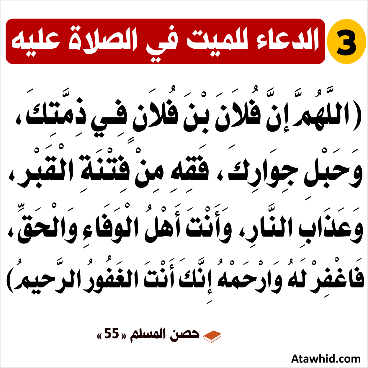 سلسلة أذكار الدعاء للميت في الصلاة عليه اللهم إن فلان بن فلان في ذمتك وحبل جوارك موقع البطاقة الدعوي